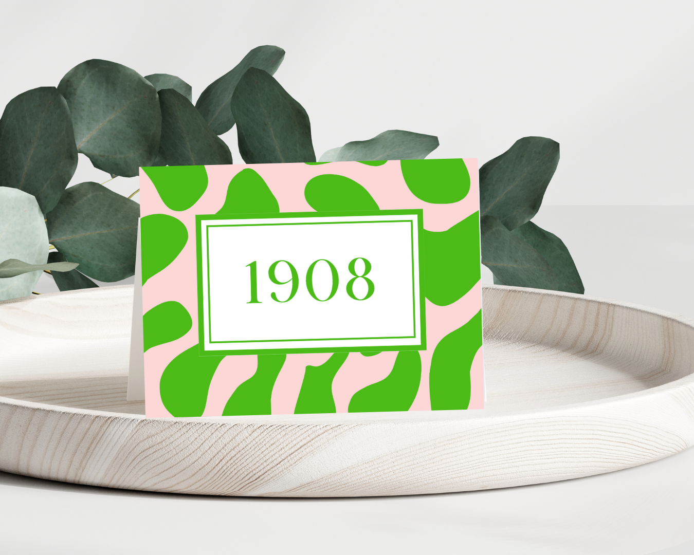 This cheerful set features 10 A2 folded thank-you cards in the signature pink and green colors of Alpha Kappa Alpha Sorority Inc. Each note is crafted on premium 110lb Smooth Ultra White card stock with a blank interior ready for your personal message. Ultra White Eggshell envelopes are included, and the entire set comes neatly packaged in cellophane wrap. Perfect for sending heartfelt thanks with sorority pride!