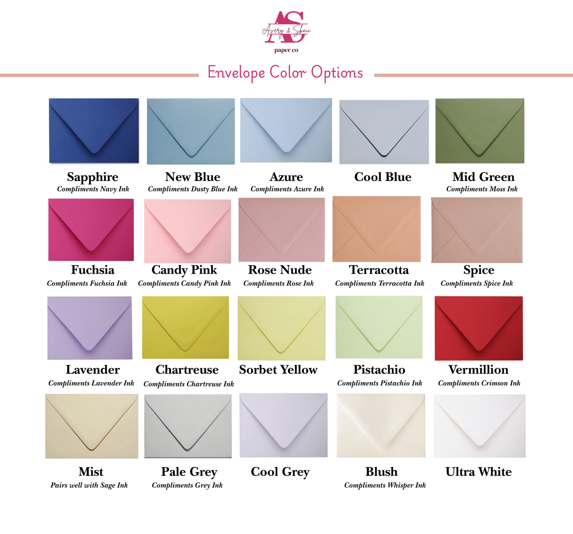 Couple's Stationery: Personalized notecards and envelope stationery set designed for two. Each A2 flat notecard is printed on 110lb linen cover stock and paired with an envelope of your choice. Packaged in a clear top box, this custom set is perfect for couples looking to express gratitude, share heartfelt notes, or stay in touch in style. A must-have for any personal or professional occasion.